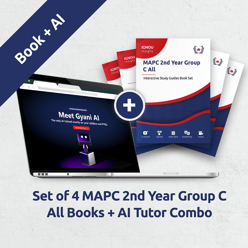 To be extremely thorough with your studies, we highly recommend getting Gyani AI – the ONLY AI Tutor that is trained specifically on the IGNOU syllabus and PYQs. You can chat with it for all your doubts, or use it’s 20+ tools and features to generate UNLIMITED syllabus oriented notes, practice questions, mock tests, mind-maps, flashcards, videos, games, quizzes, study plans, and more. Gyani AI Pro Plan for 3 subjects is normally ₹9000 per year, but with this combo you get a special discount and pay only ₹4050 That works out to just ₹112.5 / subject per month! Learn more about Gyani AI here.
